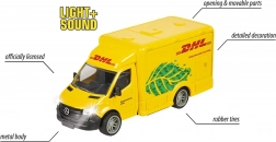 Metalowy model furgonu MERCEDES-BENZ DHL Majorette Grand 12,5 cm ze światłami i dźwiękami