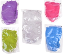 Zawiera 5 kolorów: różowy, fioletowy, zielony, niebieski oraz mniej przetworzony, naturalny. Dzieci mogą tworzyć różne kształty za pomocą 4 foremek w kształcie muszli, kaczuszki, gwiazdy i żółwia. Świetna zabawa dla każdego małego twórcy!