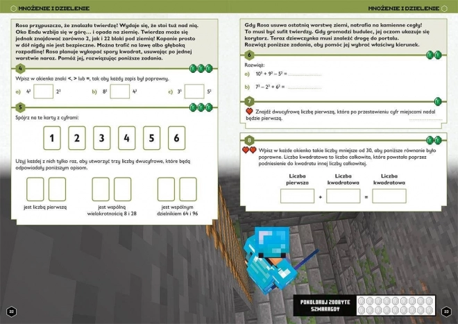 „Minecraft. Matematyka. Megazadania. 12+” to sprytnie zaprojektowana książka edukacyjna, która prowadzi czytelników przez różne biomy i zleca zadania inspirowane grą Minecraft. Każdy rozdział rozwija kluczowe umiejętności matematyczne, a jednocześnie utrzymuje uwagę dzięki elementom zabawy, fabule i systemowi nagród.