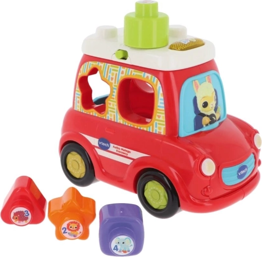 Boczna ścianka autka służy jako sorter kształtów, a w opakowaniu znajdziesz 4 kolorowe klocki o różnych kształtach, które pomagają rozwijać małą motorykę, logiczne myślenie i koordynację ręka–oko. Zabawka jest odpowiednia dla dzieci w wieku od 6 do 36 miesięcy, a dzięki dołączonej testowej baterii AA jest gotowa do użycia od razu po rozpakowaniu.