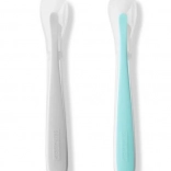 Zestaw obiadowy Easy-Feed jest niezbędnym pomocnikiem dla każdego rodzica. Ergonomiczny design ułatwia podawanie jedzenia jednym ruchem, podczas gdy miękkie silikonowe łyżeczki chronią dziąsła dziecka. Okrągły kształt łyżek pomaga łatwo wytrzeć nadmiar jedzenia z twarzy dziecka.