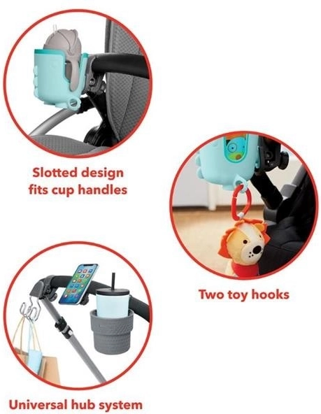 Uchwyt na napoje Stroll & Connect marki Skip Hop sprawi, że Twoje dziecko będzie miało napój zawsze pod ręką. Mieści kubek i butelkę, a dzięki uniwersalnym haczykom pasuje także do wózków sklepowych. Dodatkowe haczyki na zawieszki zajmą uwagę każdego malucha.
