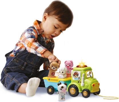 - Interaktywny traktorek z przyczepą i wkładanymi zwierzątkami