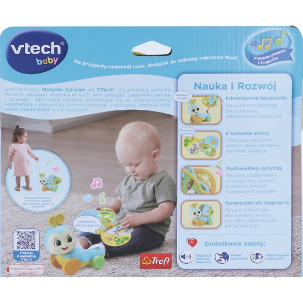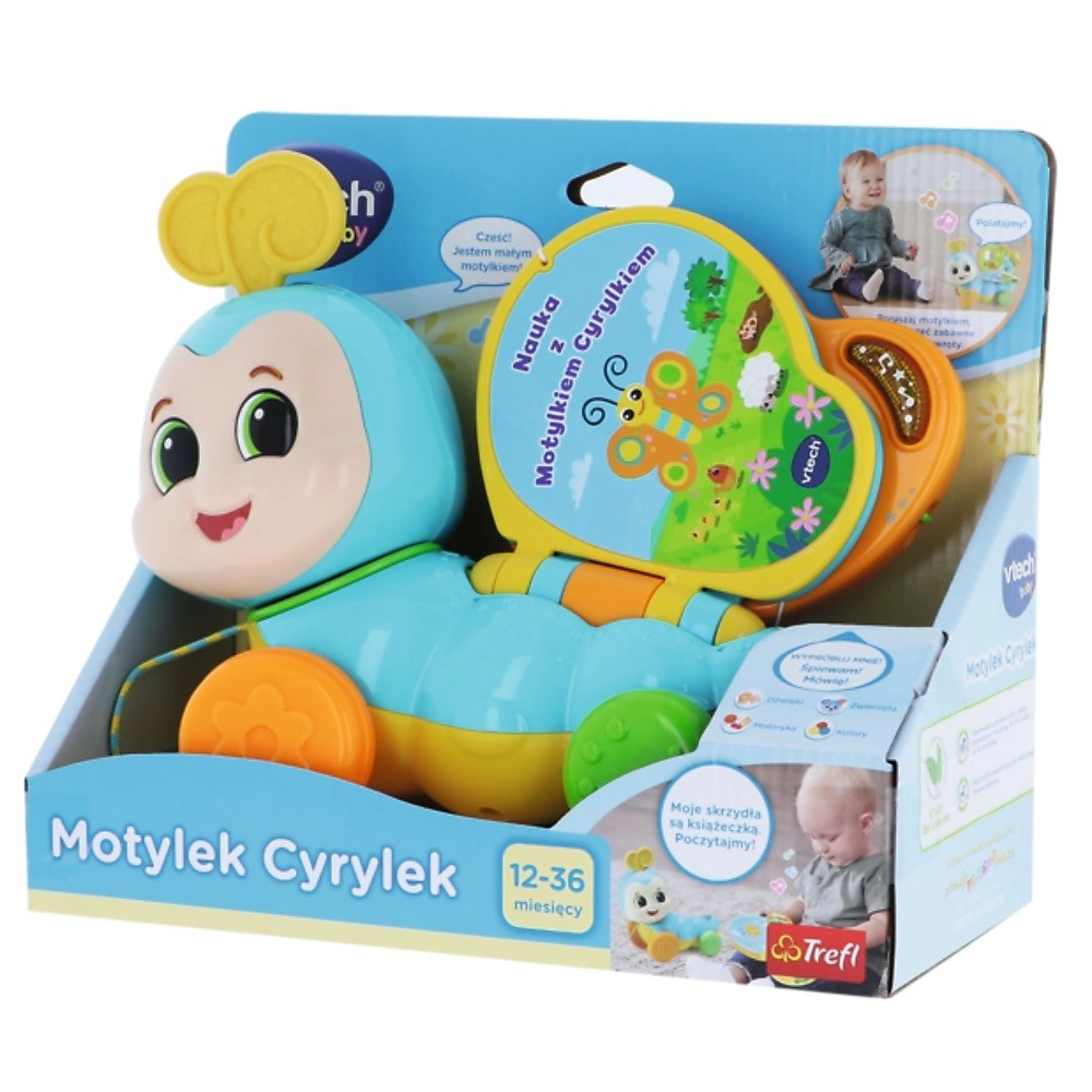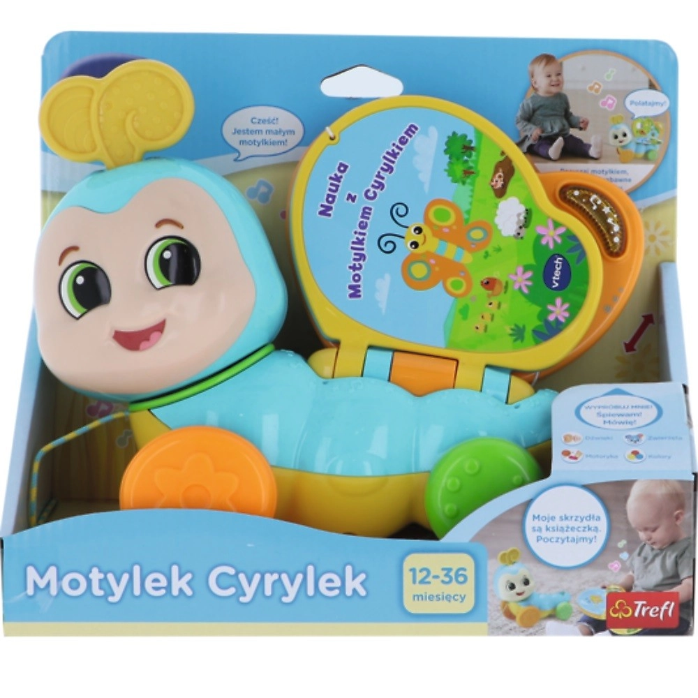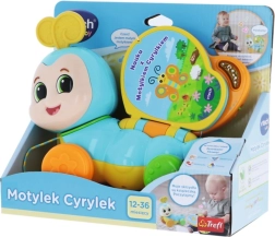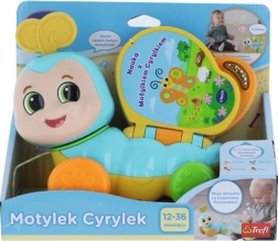 Po pociągnięciu za sznurek motylek rusza, towarzysząc dzieciom wesołymi dźwiękami i frazami. Wspiera naturalną chęć raczkowania i chodzenia.