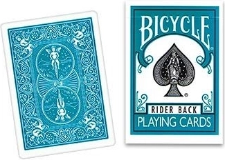 Premiumowe karty do gry Bicycle z turkusowym rewersem w rozmiarze pokerowym. Dzięki wykończeniu powierzchni Air‑Cushion Finish łatwo się tasują, gładko suną i dłużej wytrzymują. Idealne do sztuczek karcianych, cardistry oraz zwykłej gry, dodatkowo z 3 kartami gaff do efektownych trików.