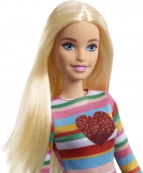 Tęczowe paski i błyszczące serduszko na topie nadają lalce ikoniczny look „Malibu”, zapewniając codzienną modową inspirację.
