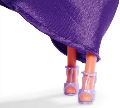 - Lalka, fioletowe szpilki, pasująca torebka, pierścionki