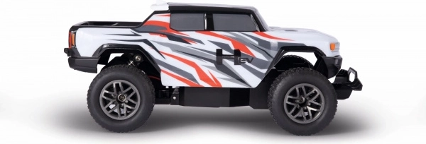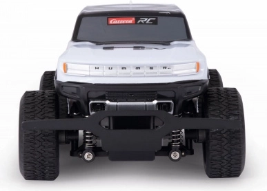 Auto RC Carrera GMC Hummer EV zostało zaprojektowane do dynamicznej jazdy w terenie i na twardych nawierzchniach. Wysokie podwozie, duże koła terenowe oraz skuteczne tłumienie pozwalają płynnie pokonywać nierówności. Precyzyjne, proporcjonalne sterowanie zapewnia świetną kontrolę kierunku i prędkości, dzięki czemu jazdę docenią zarówno początkujący, jak i zaawansowani.