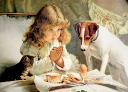 Detaliczy motyw z dziewczynką i pieskiem w rozmiarze 30 × 40 cm po ukończeniu pięknie się mieni i doskonale prezentuje się w ramie w każdym wnętrzu.