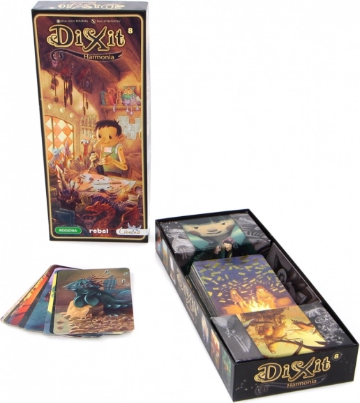 Dixit 8 zawiera 84 nowe, wspaniale zilustrowane karty o tematyce harmonii oraz walki o jej utrzymanie. Karty można łączyć ze wszystkimi edycjami i dodatkami gry Dixit.