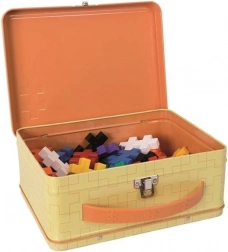W zestawie znajduje się wytrzymała metalowa walizka z uchwytem i zatrzaskiem, która utrzymuje klocki razem i ułatwia ich przenoszenie oraz przechowywanie. Dzieci mają więc układankę zawsze pod ręką – w domu, na wycieczkach i u dziadków. Różnorodna paleta podstawowych kolorów zachęca do nieskończonej liczby pomysłów i zabaw. Uwaga: kolory elementów mogą różnić się od prezentowanych.