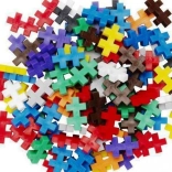 Prosty kształt „plusa” umożliwia układanie płaskich mozaik i przestrzennych konstrukcji – od zwierząt, przez pojazdy, po własne światy do zabawy.