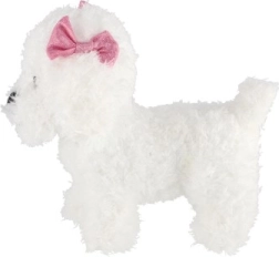 Ten mięciutki pluszowy piesek zachwyci każde dziecko swoim miłym wyrazem pyszczka i puszystym futerkiem. Dzięki kompaktowej wysokości 21 cm łatwo go przenosić, więc może towarzyszyć w domu, w wózku i w podróży. Miękkie materiały są przyjemne w dotyku i dają poczucie bezpieczeństwa podczas zasypiania.