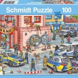 Zabawne puzzle dla dzieci z motywem POLICJI W AKCJI marki Schmidt oferują 100 solidnych elementów, które po ułożeniu stworzą obraz o wymiarach ok. 36,1 × 24,3 cm. Idealne do rozwoju cierpliwości, motoryki małej i logicznego myślenia.