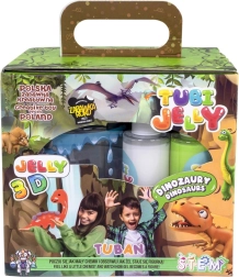 Zostań małym chemikiem i ożyw świat dinozaurów. Żelowe płyny TUBI JELLY mają wyjątkową zdolność przemiany płaskiego obrazka w przestrzenną figurkę 3D. Wybierz szablon z książki wzorów lub zaprojektuj własnego dinozaura, zanurz go w roztworze z aktywatorem i obserwuj przemianę.
