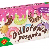 ODLOTOWA POSYPKA to znana i lubiana gra zręcznościowa typu PCHEŁKI w całkowicie nowej, słodkiej odsłonie. Pudełko zawiera specjalny dysk przypominający apetycznego pączka. Gracze zdobią go, wystrzeliwując w jego kierunku kolorowe posypki (żetony). W trakcie gry starają się trafiać w pola z najwyższą liczbą punktów. Zwycięża ten, kto po wystrzeleniu całej puli posypek zgromadzi najwięcej punktów. Oprócz tego, że ODLOTOWA POSYPKA jest bardzo zabawna, stanowi też świetny trening zręczności, precyzji i cierpliwości.