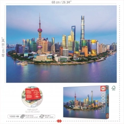 Educa Puzzle Panorama przeniesie Cię prosto do serca Szanghaju w czasie urzekającego zachodu słońca. Ten wspaniały widok złożysz z 1000 wysokiej jakości elementów, które idealnie do siebie pasują i gwarantują godziny świetnej zabawy.