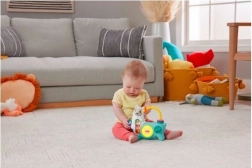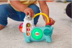Interaktywna lama FISHER‑PRICE Linkimals została zaprojektowana tak, aby zachęcać małe rączki do odkrywania. Dzięki przesuwanemu suwakowi, obracanemu tęczowemu kółku i grzechoczącym kółeczkom dzieci ćwiczą chwyt, koordynację oraz percepcję wzrokową i słuchową. Ponad 25 aktywacji w postaci świateł, piosenek, dźwięków i kwestii zmienia każdy nacisk w radosne odkrycie.