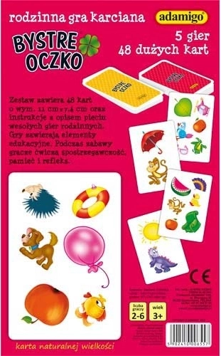 Zestaw zawiera 48 kart o wymiarach 11 × 7,4 cm oraz broszurę z instrukcjami do pięciu zabawnych gier rodzinnych. Gry zawierają elementy edukacyjne. Podczas rozgrywki gracze ćwiczą spostrzegawczość, pamięć i refleks.