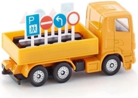 Specjalny ciągnik z znakami drogowymi pomaga utrzymywać porządek na każdej drodze.
