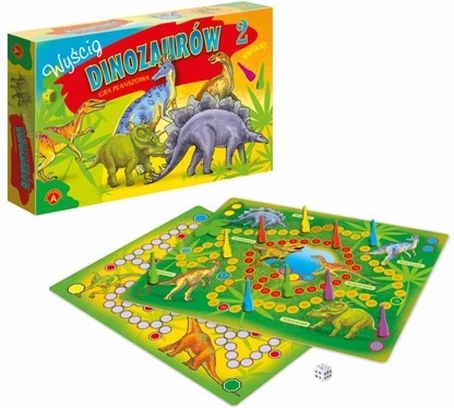 W pierwszym wariancie gry dinozaury próbują dotrzeć do źródła wody. Muszą jednak przejść przez niebezpieczny obszar, na którym czają się dwaj drapieżnicy. W drugim wariancie zwycięży dinozaur, który mimo przeszkód i przeciwności zbierze najwięcej pożywienia. „Polowanie na dinozaury” to dwie ekscytujące gry dla całej rodziny.