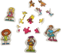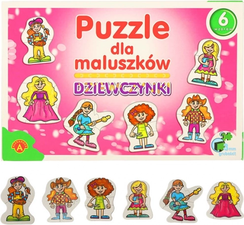 Zestaw zawiera łącznie 27 elementów podzielonych na 6 obrazków o dziewczęcej tematyce. Dzięki grubości 3 mm elementy wygodnie trzyma się w małych rączkach i dobrze do siebie pasują. Świetny pomysł na prezent oraz jako aktywność do wspólnej zabawy z rodzicami.