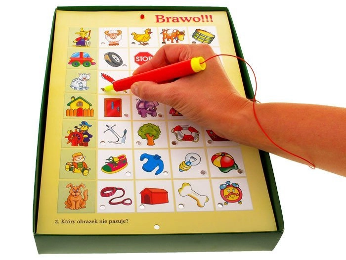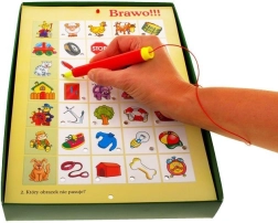 Zabawna i interaktywna gra dla dzieci w wieku 4–8 lat, która rozwija logiczne myślenie, słownictwo i spostrzegawczość. Na 12 planszach tematycznych znajdziesz 420 obrazków, które dzieci łączą za pomocą dotykowych piór. Prawidłowa odpowiedź jest potwierdzana zapaleniem kontrolki, co motywuje do dalszego odkrywania i nauki przez zabawę.