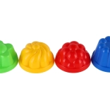 Plastowe foremki do piasku – okrągłe babeczki 8 cm, zestaw 4 szt. w siatce
