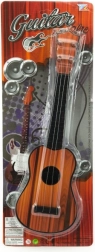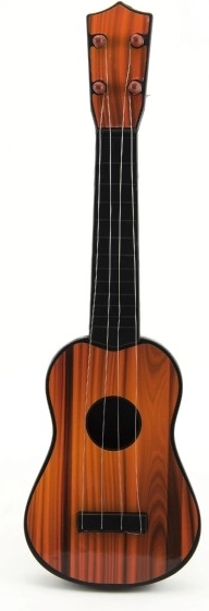 Dziecięca plastikowa gitara o długości 40 cm to idealny pierwszy instrument muzyczny dla małych muzykantów. Pomaga rozwijać małą motorykę, koordynację ruchową oraz poczucie rytmu. Dostępna w dwóch wariantach kolorystycznych imitujących jasne lub ciemne drewno. Odpowiednia od 3 lat.