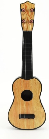 Instrument realistycznie odwzorowuje wygląd drewnianej gitary w dwóch stylowych wykończeniach – jasne i ciemne drewno. Idealna do domowej zabawy, przedszkoli oraz jako prezent dla małych początkujących.