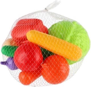 Ten kolorowy zestaw plastikowych warzyw w praktycznej siateczce zapewnia dzieciom autentyczne wrażenia z gotowania i zabawy w sklep. Dzięki różnorodnym warzywom, takim jak pomidor, marchew, papryka, kukurydza, bakłażan, cebula, ziemniak oraz kapusta, mali kucharze ćwiczą małą motorykę i poszerzają słownictwo.