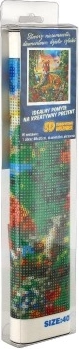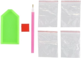 Zestaw zawiera wszystkie niezbędne przybory do diamentowego malowania: płótno, długopis aplikacyjny, miseczkę, wosk oraz kolorowe kryształki.