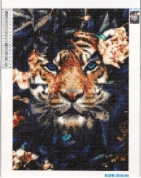Stwórz piękny obraz Tygrysa w kwiatach z diamentowym połyskiem. Obraz jest kreatywnym projektem z jasnymi instrukcjami i kodem kolorystycznym dla łatwego ukończenia.