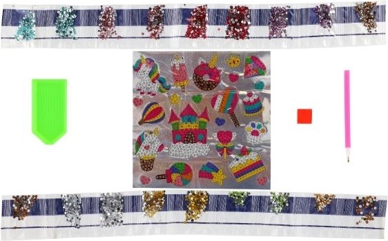 Odkryj zabawę z naszym zestawem Diamentowe malowanie Jednorożce i słodkości. Ten zestaw zawiera wszystko, czego potrzebujesz, aby stworzyć piękne naklejki ozdobione błyszczącymi kryształkami. Zestaw jest idealny dla wszystkich, którzy kochają kreatywne aktywności i lśniące dekoracje.
