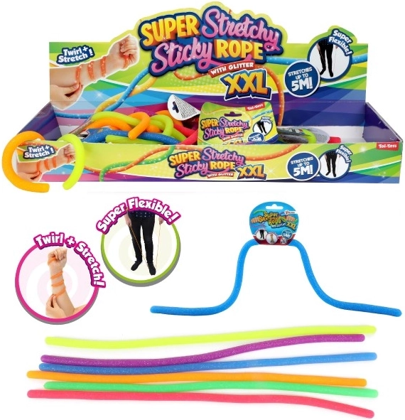 Nasze Super Rozciągliwe Lepkie Gumy XXL mogą zostać rozciągnięte do długości 5 metrów, co umożliwia wiele możliwości zabawy i kreatywności.