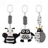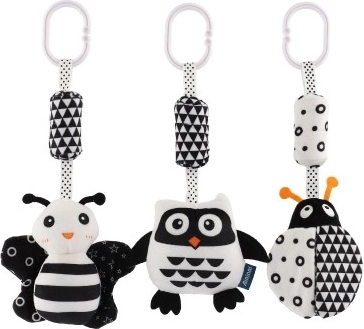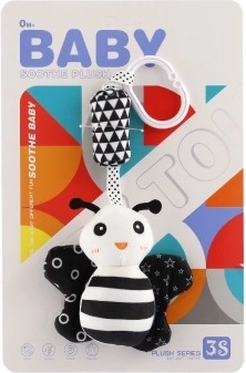 Ta czarno-biała zawieszana pluszowa zabawka została zaprojektowana dla niemowląt od 0 miesięcy. Wysoki kontrast kolorów naturalnie przyciąga wzrok dziecka, wspiera koncentrację i pierwsze umiejętności wzrokowe. Miękkie materiały i delikatne bodźce dźwiękowe zapewniają bezpieczne i kojące doznania sensoryczne.