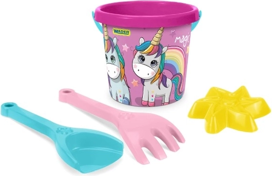 Hurra na plac zabaw! Ten wysokiej jakości zestaw do piasku marki Wader zapewni dzieciom od 12 miesięcy nieskończoną zabawę. W opakowaniu znajdziesz wiaderko, łopatkę, grabki i foremkę – wszystko z wytrzymałego plastiku, idealne na plażę i do piaskownicy. Kolorowe motywy piratów lub jednorożców wspierają kreatywność i rozwój małej motoryki.