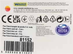 Dziecięcy zestaw do piasku z motywem PAW Patrol zapewnia mnóstwo zabawy w piaskownicy, na plaży i w ogrodzie. Zawiera wiaderko ok. 12 cm, łopatkę, grabki oraz 2 foremki. Lekki i wytrzymały plastik, pakowany w siatce dla łatwego przenoszenia.
