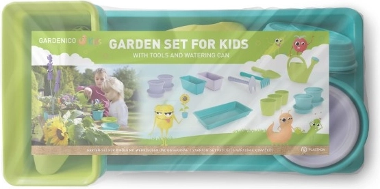 Zestaw dla dzieci z narzędziami dla małych ogrodników to idealna zabawa! Zawiera wszystko, co potrzebne do uprawy ziół i innych roślin. Zestaw doskonale rozbudzi zainteresowanie dzieci naturą, która nas otacza. Zawartość zestawu: 4x doniczka z podstawką w 2 rozmiarach, 3x osłonka na doniczkę, 2x mini-skrzyneczka, 1x podstawka, 1x konewka, 1x łopatka, 1x grabki, 1x motyczka. Wymiary opakowania: 40 x 20 x 11 cm