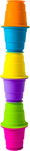 Kubeczki o różnych rozmiarach można układać w wieżę lub wkładać jeden w drugi. Dzieci ćwiczą małą motorykę, koordynację oko–ręka oraz logiczne myślenie.