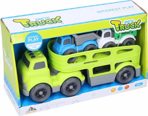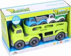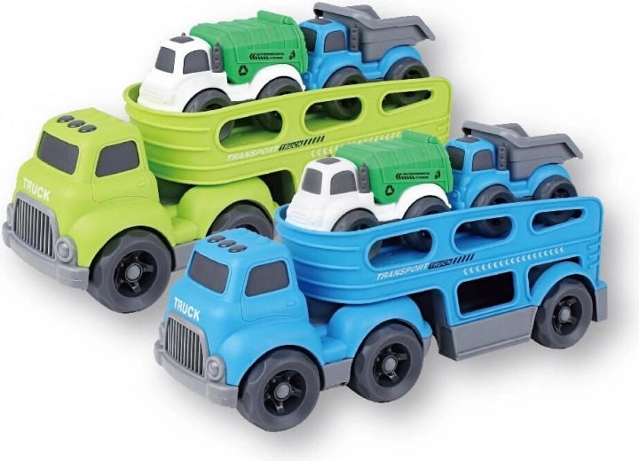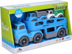 Szukasz sposobu na łatwy i efektywny transport samochodzików? Ten solidny ciągnik z lawetą Ci to umożliwi! Ma 30 cm długości, co zapewnia wystarczająco miejsca na umieszczenie aż trzech autek, które są częścią zestawu. Laweta dostępna jest w kolorze niebieskim i zielonym, więc każdy znajdzie coś dla siebie.