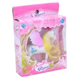 Ten jednorożec został wykonany z dbałością o szczegóły, aby zachwycić wszystkich małych miłośników fantasy. Kolorowe warianty, takie jak biały, różowy i fioletowy, pozwalają dopasować zabawkę do własnego gustu. Grzywa została zaprojektowana tak, aby dzieci mogły ją czesać za pomocą dołączonego grzebienia, co daje jeszcze więcej możliwości zabawy.