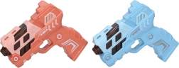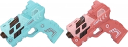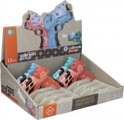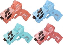 Zabawny pistolet dla dzieci o długości 12 cm oferuje efekty świetlne i dźwiękowe oraz projekcję obrazu dla jeszcze większej frajdy. Dostępny w 4 wariantach kolorystycznych (niebieski, zielony, pomarańczowy, różowy). Zasilanie 2× AAA bateriami, które nie są częścią zestawu.