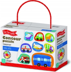 Odkryj świat środków transportu z konturowymi puzzlami zaprojektowanymi specjalnie dla małych dzieci. Każdy z 8 obrazków składa się jedynie z dwóch solidnych elementów, co ułatwia pierwsze kroki w układaniu i wzmacnia pewność siebie małych graczy. Dzięki kontrastowym kształtom i wyraźnym motywom dzieci szybko zrozumieją zasadę dopasowywania.
