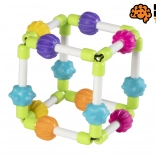 Zabawka Quubi została zaprojektowana tak, aby wspierać naturalną ciekawość niemowląt. Wykonana jest z miękkiego, elastycznego materiału, który jest przyjemny w dotyku i bezpieczny dla dziecięcych dziąseł. Dzięki różnym fakturom i kształtom dziecko trenuje zmysł dotyku, koordynację ręka-oko i odkrywa nowe bodźce.