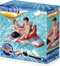 Wyrusz na przygodę z nadmuchiwanym myśliwcem Bestway, który jest idealnym towarzyszem wodnych zabaw. Dzięki solidnym uchwytom poradzisz sobie nawet z najbardziej niesfornymi falami w pełnym komforcie. Realistyczna grafika i imponujący rozmiar 136 x 135 cm ucieszą każdego młodego pilota. Wysokiej klasy materiały i staranne wykonanie zapewnią Ci świetną zabawę na plaży lub w basenie.