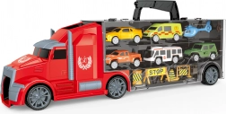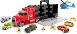 - Zawartość zestawu: ciężarówka z przyczepą, 5 samochodzików, 1 helikopter