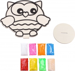 Drewniany obrazek z wyraźnymi konturami ułatwia wypełnianie i krok po kroku prowadzi dzieci do pięknego efektu. Idealny na pierwsze projekty twórcze.