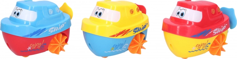 Ta kolorowa plastikowa łódeczka dostarcza dzieciom radości z wodnych zabaw. Dzięki prostemu mechanizmowi nakręcania sama porusza się po powierzchni wody i zachęca dzieci do odkrywania oraz zabawy w wodzie. Odpowiednia do wanny i basenu, cieszy zabawnym wyglądem z dużymi oczami.