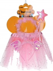 Zamień swoją małą księżniczkę w bajkową postać dzięki magicznemu karnawałowemu zestawowi obejmującemu spódniczkę, opaskę i różdżkę.